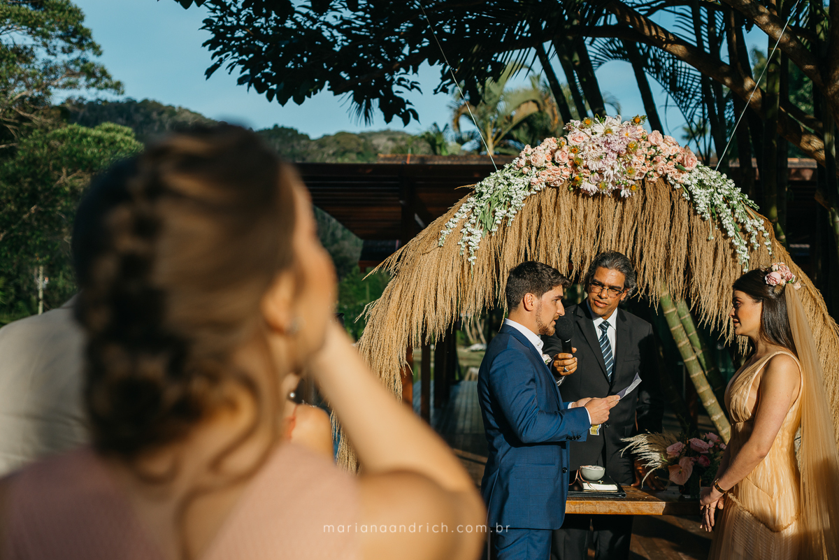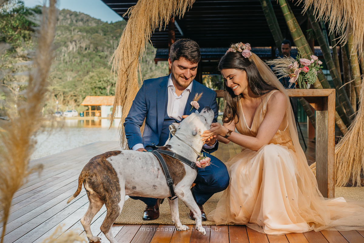 Um cerimonia emocionante, com lindas palavras e a participação especial da cachorrinha do casal que foi para alegrar ainda mais o dia.