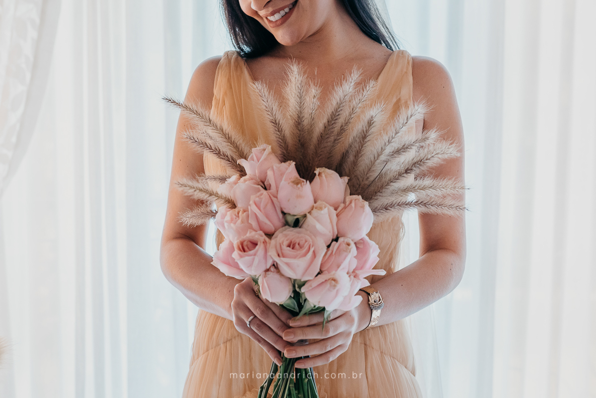 Seu vestido foi confeccionado pela sua cunhada Júlia, do Ateliê Júlia Patez. E ver o carinho e cuidado dela com cada detalhe de Mariah foi lindo.
